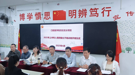 (本网讯 何顺莉 柯豆豆 张玮)4月12日,口腔医学院分党校2025年上半年入党积极分子培训开班典礼在德艺楼301室举行。口腔医学院全体班子成员、教师代表以及入党积极分子,孝感市委教育工委选派了湖北孝感高级中学、孝感航天中学、孝感市工业学校、孝感生物工程学校、孝感市高级技工学校、奥美高级中学、菁华高级中学、孝感创兴中等职业学校14名骨干教师也参加了本次开班典礼和培训。