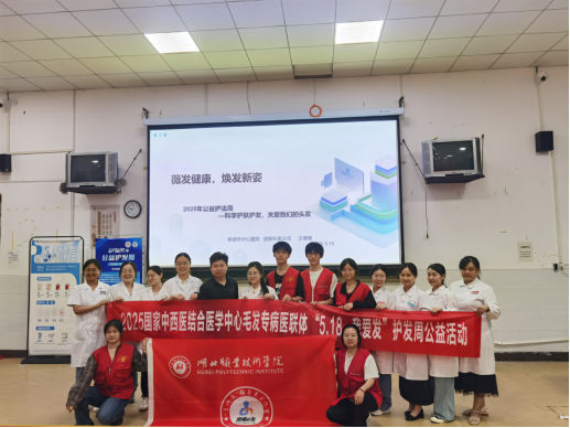 (本网讯 雷珅 张凤玲)卫生技术学院联合孝感市中心医院皮肤科,举办“5.18我爱发”主题科普活动,孝感市中心医院皮肤科副主任王珊珊专家团队,为学生带来一场生动实用的毛发健康与皮肤护理知识讲座,现场气氛热烈,互动频频,掀起科学护发热潮。