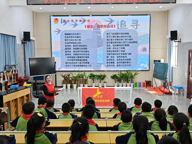 活动还设置了互动环节,小朋友们积极参与,纷纷举手回答问题,分享自己的想法。最后,大家一起朗诵了诗歌《延安,我把你追寻》,稚嫩而真挚的声音回荡在校园里,表达出孩子们对延安精神的崇敬与追随之情。
