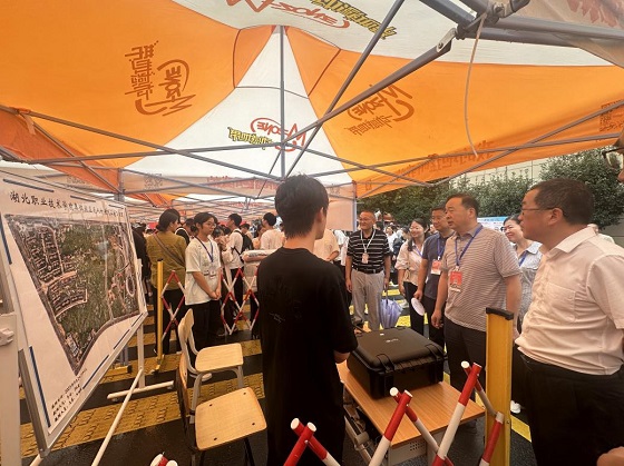 迎新现场,学院特别打造沉浸式专业体验区,以“科技+实践”点燃新生热情。吴大为老师操控搭载高精度传感器的测绘无人机腾空而起,实时投射的三维地形图让复杂测绘原理一目了然;奥体校区航拍图前,副院长王菲结合无人机采集的地理数据,解析智慧城市建设的测绘支撑体系。